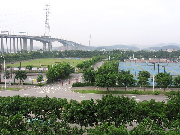 Karttaan on merkitty minun asuntoni sijainti. Yliopiston kampus sijaitsee Guangzhoun yliopistosaarella, jossa on yhteensä kymmenen yliopistoa. Kampuksella on asunnot kaikille opiskelijoilla ja osalle opettajista. Kampuksella on lisäksi ostoskeskus, josta löytyy supermarketti, elektroniikka liikkeitä, ravintoloita, optikkoja, parturi sekä KFC ja Pizza Hut. Kampukselle pääsee keskustasta helpoiten metron ja bussin yhdistelmällä. Ensin metrolla Guangzhou Higher Education Mega Center South/大学城南站 -asemalle(linja 4) ja sieltä bussilla 382 perille. Bussista kannattaa poistua korkean sillan alituksen jälkeen.